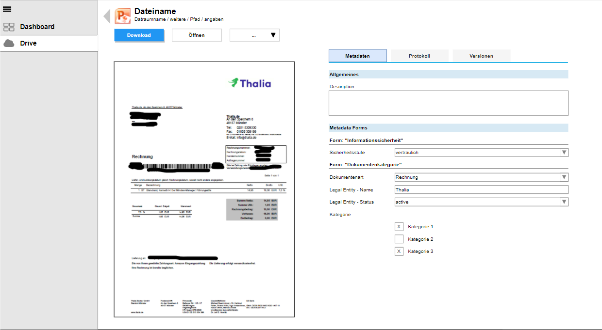 Dateien sind oft mit Metadaten assoziiert. Das können z. B. Basis-Daten wir Name, Pfad oder Erstellungsdatum sein, aber auch komplexere Daten über Workflows oder Drittsysteme. Metadaten erleichtern die Verwaltung von Dateien und Informationen. Sie helfen dabei Dateien in einen Kontext zu setzen ohne gleich die ganze Datei laden zu müssen. Metadaten machen das Zusammenarbeiten im Business Filemanager um ein Vielfaches effizienter. Ebenso helfen Metadaten bei der Produktintegration in eine Prozess- und Systemlandschaft.