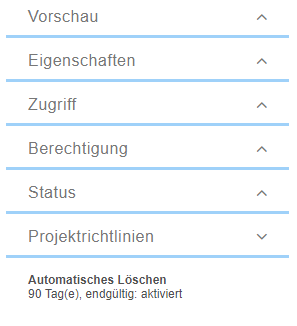 Ob eine Richtlinie zum automatischen Löschen hinterlegt wurde und welche Einstellungen getroffen wurden, erkennt der Nutzer im rechten Bereich unter „Projektrichtlinien“ auf einen Blick.