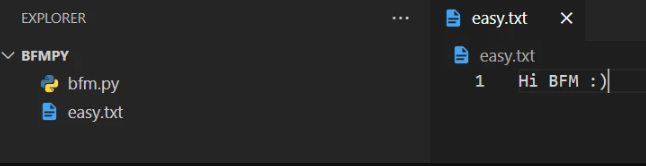 Zuerst muss ein leeres Pythonskript mit beliebigen Namen erstellt werden, z. B. "bfm.py". Das kann mit dem Code-Editor der Wahl erstellt werden. Daraufhin wird das Modul „sys“ von Python importiert, um den Dateinamen zum nachfolgenden Upload als Konsolenparameter abfragen zu können.