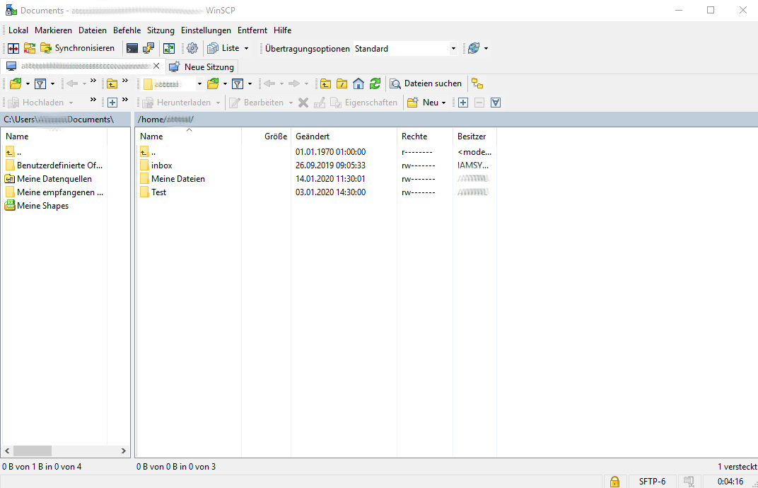 - Mit dem SFTP Protokoll können Sie Dateien löschen, herunterladen, hochladen, verschieben, umbenennen und kopieren